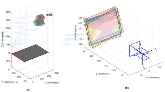 The pattern centric and camera centric view of during the calibration process is shown in Figure 2a,b.