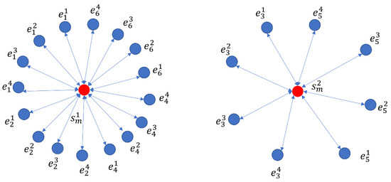 After obtaining the whole graph representation of the mention graph, we move to the next stage, which is extraction of the global coherence feature of the current topic. First, we construct the candidate entity association graph, . We construct a central node. The representation of the central node is the representation of the previously obtained mention graph. Consider all candidate entities in the mention set of the current mention graph as nodes of the graph to obtain the final set of nodes of the candidate entity association graph, . We connect all candidate entity nodes to the central node and obtain the set of edges as . The final candidate entity association graph is shown in Figure 4.