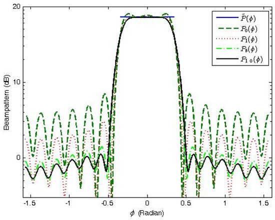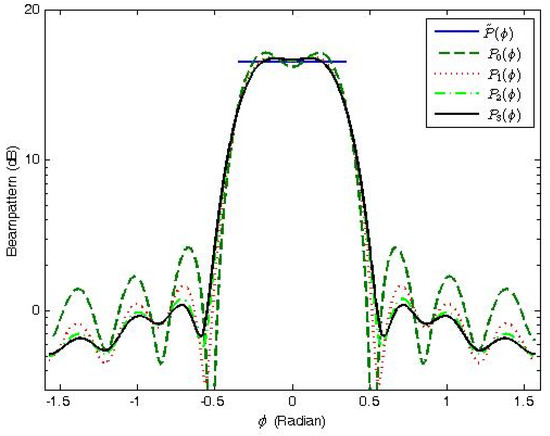 If the desired beampattern is a continuous function and is obtained from Equations (10)–(12), then
