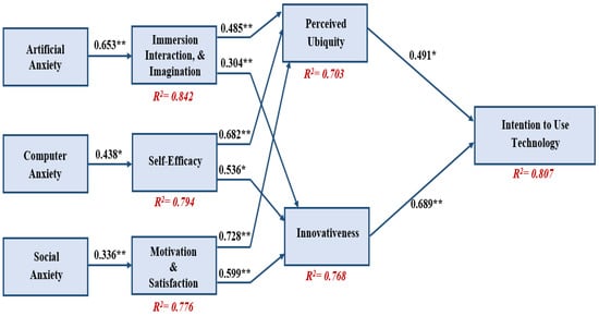 - Barrett, A.J.; Pack, A.; Quaid, E.D. Understanding learners’ acceptance of high-immersion virtual reality systems: Insights from confirmatory and exploratory PLS-SEM analyses. Comput. Educ. 2021, 169, 104214. [Google Scholar] [CrossRef]