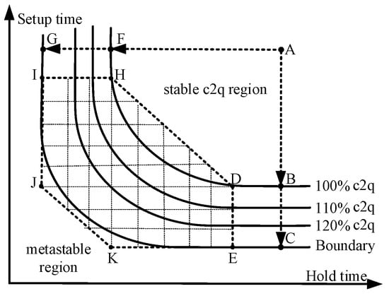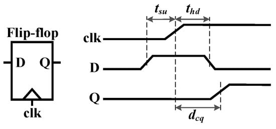 - Balef, H.A.; Jiao, H.; de Gyvez, J.P.; Goossens, K. An analytical model for interdependent setup/hold-time characterization of flip-flops. In Proceedings of the 2017 18th International Symposium on Quality Electronic Design (ISQED), Santa Clara, CA, USA, 14–15 March 2017; pp. 209–214. [Google Scholar] [CrossRef]