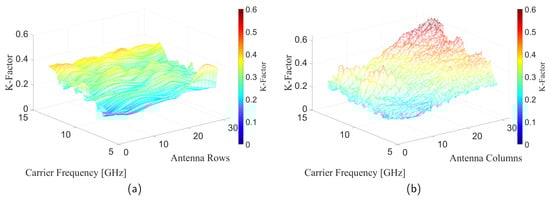 - Opposite to RMS delay spread, the K-Factor is larger in higher frequency band. With great attenuation, the number and power of NLoS paths are decreased more critically compared to LoS paths. Therefore, the K-Factor increase with increasing carrier frequency.