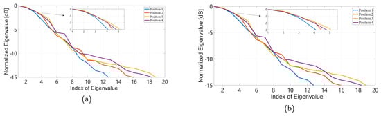 - The sparsity of the channel in frequency and spatial domains with different user locations is introduced in Figure 13. As location changes, the DoF in these two dimensions changes with a similar increasing trend in the long term, both showing that the channel is more sparse when closing to Position 1 with less MPCs.