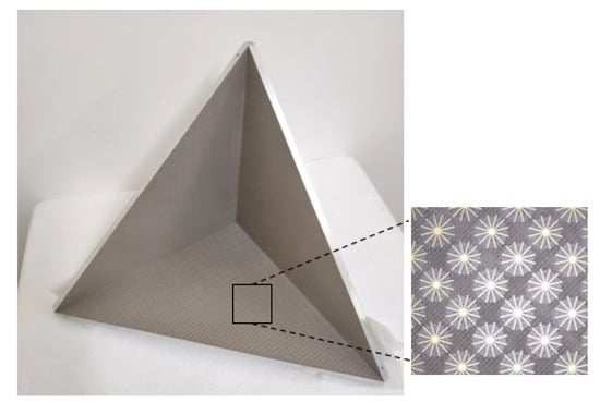 The TCR model of the loaded resistive film absorber is shown in Figure 4a. The edge length of TCR is a = 200 mm, and the absorber elements are evenly arranged on the three surfaces. Due to the thin absorber, the dielectric plate can be perfectly attached to the TCR without affecting the structural properties of the TCR itself.