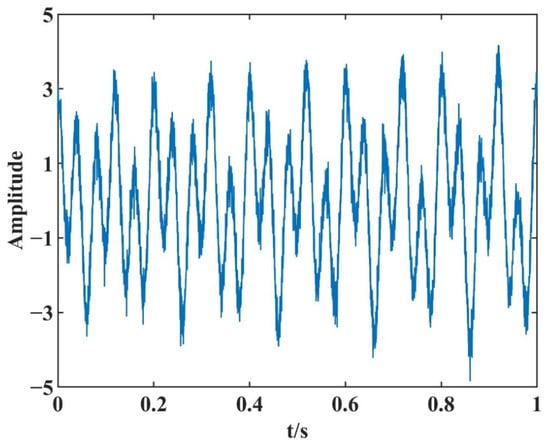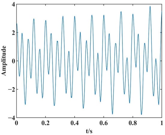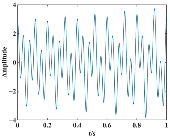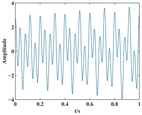 where ; the sampling interval is 0.00025 s; is the random noise signal sequence, that is gaussian white noise; is the mixed simulation signal sequence with noise; is the original noise-free signal sequence; and are the signal sequence components of .