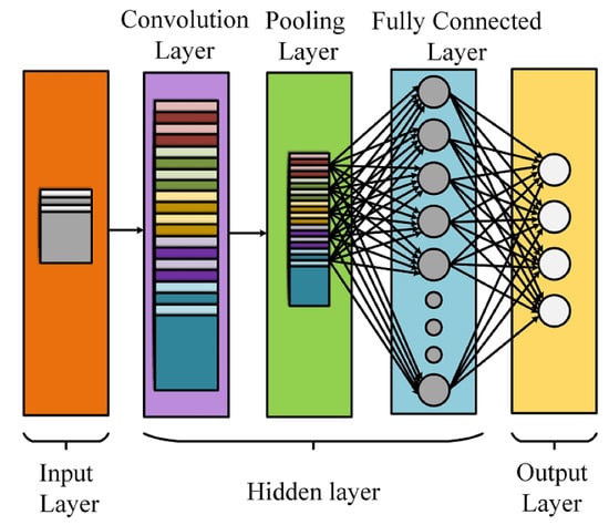 CNN is a feedforward neural network with a deep network structure. The principle is to extract features from the input data by means of multiple filters. The basic layer types in this paper model are the convolution layer, pooling layer, and fully connected layer. The Convolutional (Conv) layer is the basic structural unit, and the Conv kernel parameters are shared globally, reducing parametric numbers. The number of feature layers can be controlled using the size of the feature map in the Conv layer to learn more and more physical features. The calculation formula of the Conv layers is as follows: