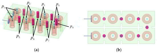 Eighth-order cavity filter. (a) Side view. (b) Top view.