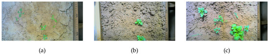 Three types of images. (a) The image of only weeds, (b) The image of only potatoes, (c) The image of both potatoes and weeds.
