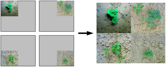 The images used in this study were collected at the Baima test site of the Nanjing Agricultural University in Nanjing, Jiangsu Province, China. The image acquisition device was a 2-megapixel camera module with a resolution of 1920 × 1080, saved in a JPG format. A total of 2000 images were obtained, including the images with only weeds, the images with only potatoes, and the images with both potatoes and weeds. The images were taken in different lighting conditions and at different growth stages, and the shooting height was fixed. Figure 1 shows examples of three types of images. Table 1 shows the number of images per type.