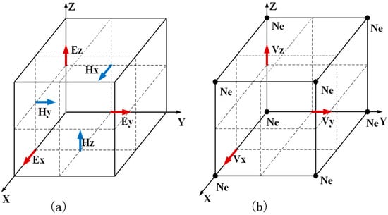 The Yee grids for the Maxwell–plasma system. (a) Maxwell’s equations. (b) Plasma equations.