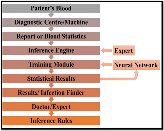 The proposed model is an Intelligent Automated System that takes a patient’s blood report from a diagnostic centre and applies fuzzy rules, a database, and a neural network to it. Fuzzy rules imply that the inference engine retrieves the blood report parameters and recognizes new infections, and how neural networks operate is when a new case is received, the neural network learns the new rules and cases.