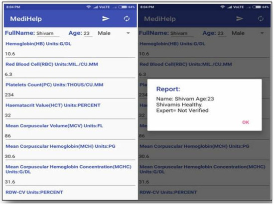 To test the proposed system and its functionality, the sample blood reports and the fetched parameters are taken. The blood parameters have some values to check on the simulator and the outcomes are shown in the figure. Table 8, Table 9 and Table 10 show the parameters and the values of a person after the blood test. The results fetched from our proposed system are very much accurate.