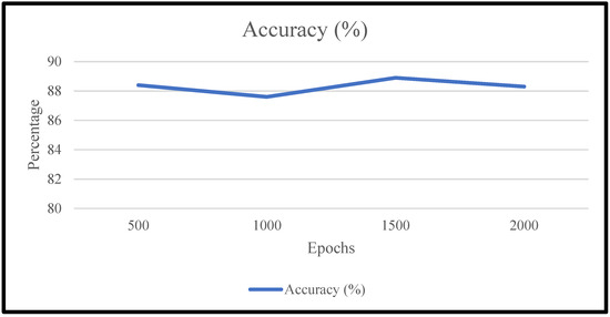This is one way for the users to enter the details. This interface is quite easy to operate and gets the results on the screen. Various backend functions are running to compile and analyze the inputs entered by the user. The results are the proposed model is tested on 500 epochs, 1000 epochs, 1500 epochs, and 2000 epochs with a learning rate of 0.001. The outcome is shown in Figure 9, demonstrated on the 1000 blood samples shown.