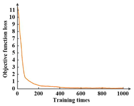 To verify the convergence of the proposed method, the training error during the training process is displayed in Figure 8. It can be seen that the training error has obviously converged at about 500 training times. In the subsequent training rounds, although the training error continues to decrease, the rate of decrease gradually slows down, and the overall trend tends to converge.