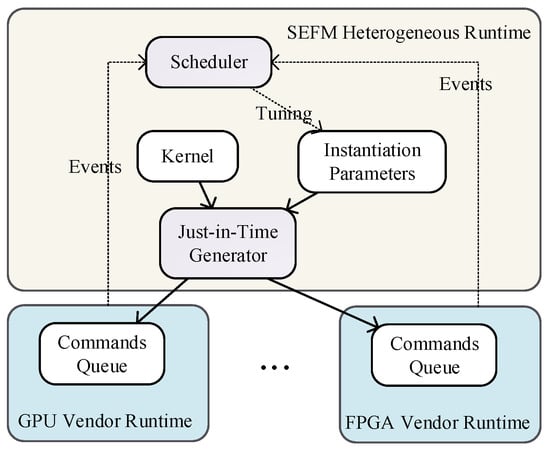 - Guzmán, M.A.D.; Nozal, R.; Tejero, R.G.; Villarroya-Gaudó, M.; Gracia, D.S.; Bosque, J.L. Cooperative CPU, GPU, and FPGA heterogeneous execution with EngineCL. J. Supercomput. 2019, 75, 1732–1746. [Google Scholar] [CrossRef]