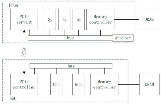 A hardware implementation of execution-flow, referring to the bus-style communication architecture of OneSys [26], is presented in Figure 7. All FPGA-based servants and a memory controller with MMU (Memory Management Unit) are attached to the bus.