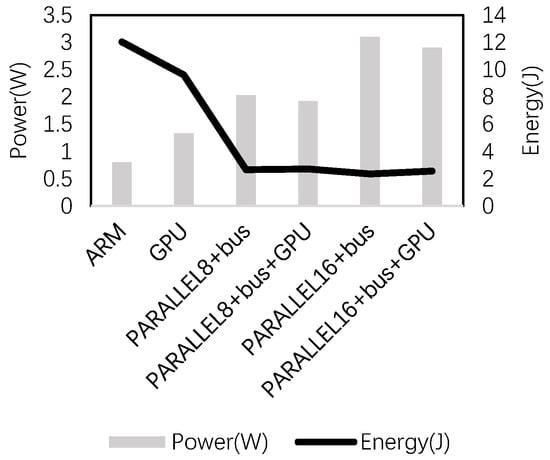 In Figure 13, the power increases in the order of CPU, GPU, then FPGA, and the energy consumption is in the reverse turn. The energy consumption of the CPU is about 5 times that of FPGA. The energy efficiency of collaborated GPU-FPGA is slightly lower (<10%) than the pure FPGA.