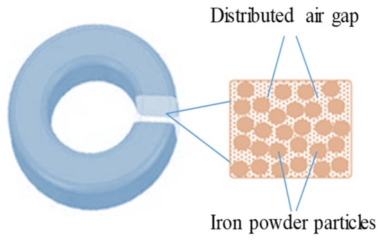 Proposed toroidal core with distributed air gap composed of resin and iron powder particles.