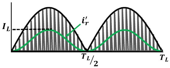 From Equation (17), it is possible to obtain the average high-frequency current delivered by the rectifier, which is defined as