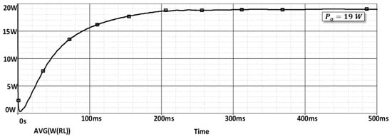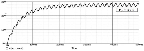In order to validate the design methodology, the resonant converter circuit shown in Figure 1 was simulated in the software OrCAD PSpice with the values shown in Table 2. The simulation time was 500 ms, which ensures the stability of the output voltage. The simulation results are shown in Figure 14, Figure 15, Figure 16 and Figure 17.