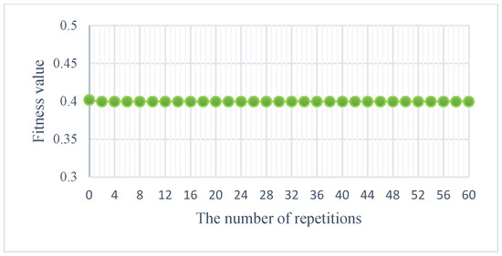 As shown in Figure 4, the fitness diagram reaches a constant value at 0.4. Figure 5 shows the stability diagram of the proposed algorithm. This diagram is presented with 60 repetitions for the proposed algorithm.