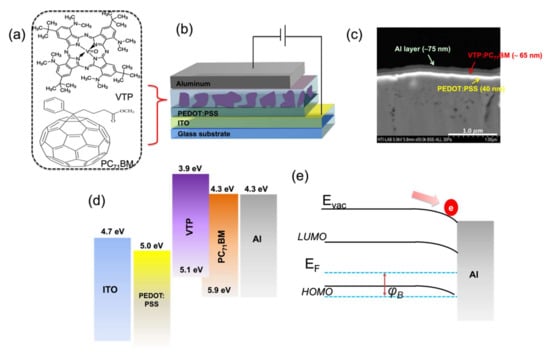 - Roslan, N.A.; Abdullah, S.M.; Abd Majid, W.H.; Supangat, A. Investigation of VTP:PC71BM organic composite as highly responsive organic photodetector. Sens. Actuators A Phys. 2018, 279, 361–366. [Google Scholar] [CrossRef]