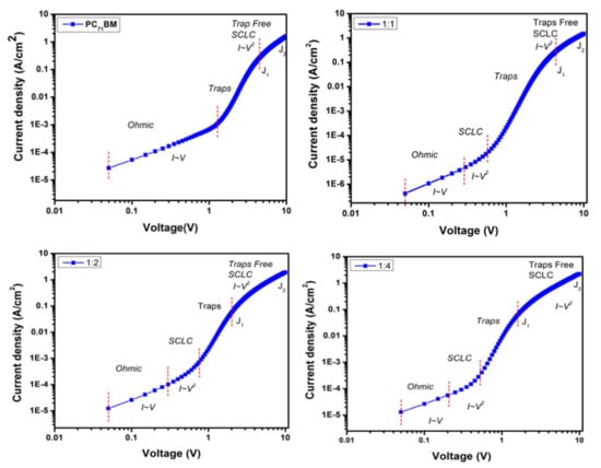 | 1:1 (VTP: PC71BM) | 2.02 × 10−7 | 7.06 × 10−5 | |