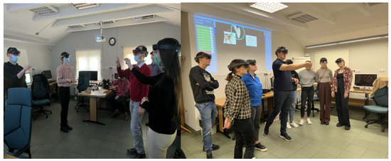 Medicine, including emergency medicine and medical education, offers a key opportunity to apply immersive technologies [13,14]. Surgeons were the first to use VR, AR, and MR to carry out procedures, improve their skills, and practice future medical interventions [15]. For example, MR helps surgeons analyze and understand the complex morphologies of congenital heart disease [16]. Thus, the application of immersive technologies has also been developed in pharmacy, both at the educational and professional levels [17], e.g., Pharmacy Times uses AR applications to provide users with additional information about drugs [18]. Ref. [18] described the virtual simulation of a pharmacy that allows users to perform pre-laboratory activities, such as preparing and mixing ad hoc preparations, and producing labels, resulting in up to a 10-fold increase in workflow efficiency. Their proposal also highlighted increased interactions between students and their lecturers. Ref. [19] reported that a VR-based platform was successful in prescription processing, pharmaceutical calculations, and selecting, preparing, packaging, and dispensing medications. Participants believed the system provided a realistic, engaging, and interactive experience that allowed them to become more proficient in drug safety practices. In [20], MR was applied to the content of the brain anatomy. It turned out that HoloLens enabled a deeper understanding of content for students and at the same time no negative side effects such as nausea, disorientation or fatigue were noticed. Thus, the physiological extension possibilities of the application of VR headsets are described in [21].