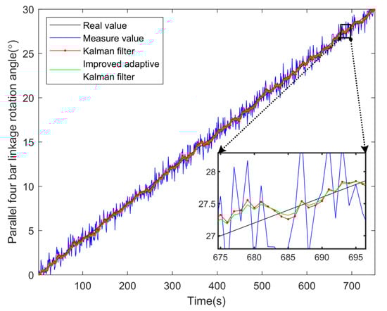 Parallel four-bar linkage rotation angle filtering error.