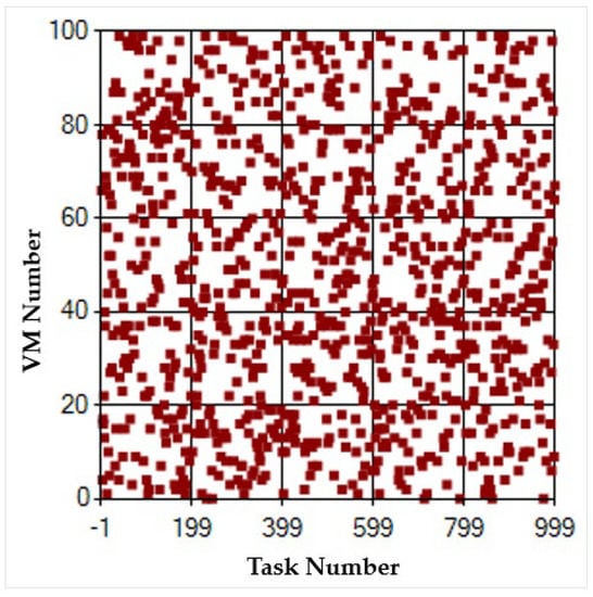 If the problem is discrete, however, can be a random number selected from the selectable and allowable integer values. Let us suppose that the problem has variables, so that the values of () can be assigned to each of these variables. Considering the permissive values of , can be a random number from these values. Since it may not be possible to assign duplicate values to variables in some problems (such as task scheduling and traveling salesman problems), the initialization of variables in these types of problems is a permutation of values. In this case, random number can be selected from any of these values, provided that the new position obtained from Equation (3) is not a duplicate. In the event of duplication, the procedure for resetting from the values of continues until the result of Equation (3) generates a new position that has not been previously selected by the gold miner for the intended variable.