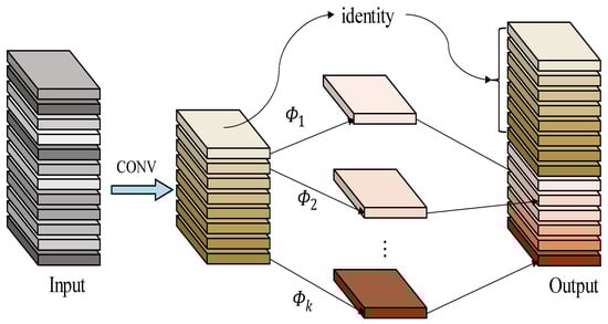 The common convolution operation is to apply the convolution kernel to the local image, slide the high latitude and low latitude in the local image, then form the correspondence in space and complete the convolution, and obtain the convolution kernel after many repetitions. The above operation enables the model to achieve better accuracy through multiple training, but it also requires many convolution operations, which has an enormous consumption of computational resources. Due to this problem, some lightweight networks remove some redundant features by removing some of the redundant feature information while reducing the model performance to achieve the effect of streamlining the model. However, some scholars’ research proves that the redundant feature information also exists in the redundant features contributing to the model’s comprehensive understanding of image data, which becomes an important part of the model performance improvement. As shown in Figure 2, it is with this in mind that, instead of trying to eliminate redundant feature maps, GhostNet uses cheaper computation to obtain redundant feature maps. According to our previous research on the lightweight network, it is concluded that GhostNet [41,42] is more prominent in terms of comprehensive performance. Therefore, we will carry out further optimization of the detection model’s resource footprint in conjunction with GhostNet.