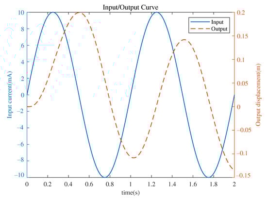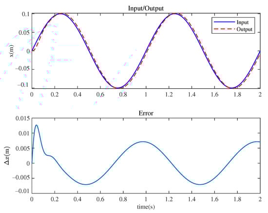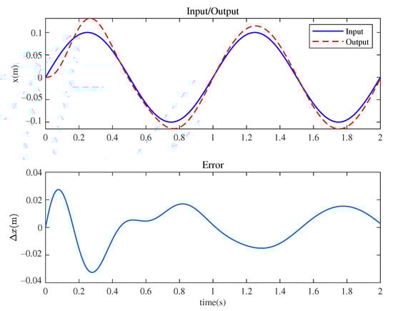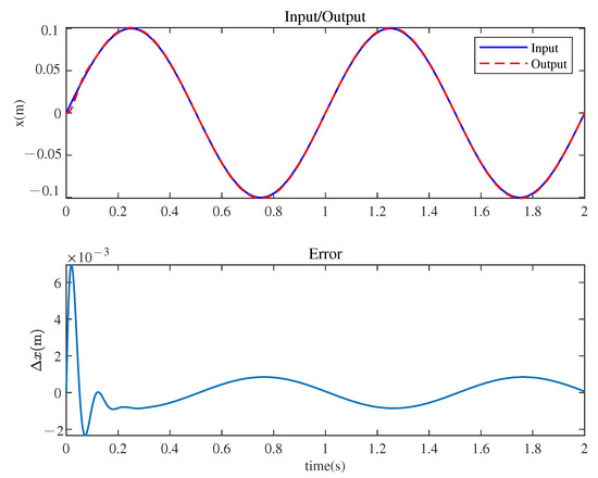 The graph of simulation results for PID control is shown in Figure 11. The upper part of Figure 11 shows the graph for comparison between the command curve and the actual displacement curve, and the lower part shows the error values of the command curve and the actual output curve.