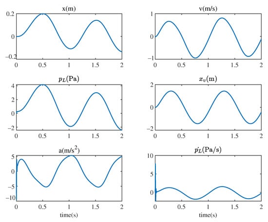 The input–output and error curves of the nonlinear backstepping semi-physical simulation of the valve-controlled symmetric cylinder are shown in Figure 13.