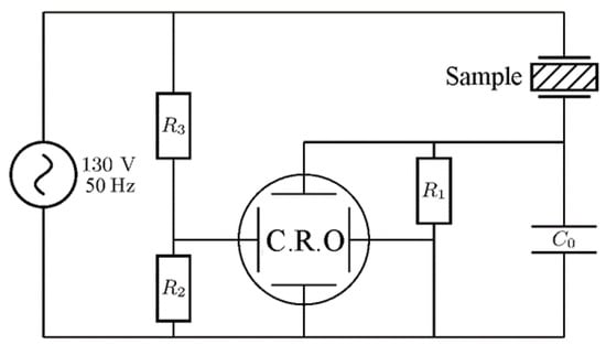The dielectric hysteresis loops were measured with a modified Sawyer–Tower circuit as shown in Figure 2. A sinusoidal AC applied voltage of 130 V and 50 Hz was applied to the sample during measurements.