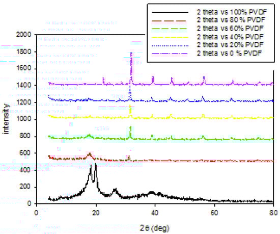 The XRD patterns of the prepared (BZT-PVDF) composite.
