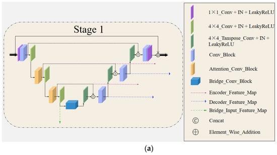 As shown in Figure 2b, the sub-network in the second stage is roughly the same as that in the first stage. We replaced the 1 × 1 convolution at the beginning and the end with a 3 × 3 convolution. In addition, at the beginning of each layer of the encoder, 1 × 1 convolution, IN layer, and leakyReLU layer are introduced to fuse the features of the previous stage. It can be noted that compared with the first stage, the encoder and decoder here apply more feature compensation, which will be explained later in the introduction of the inter-stage feature compensation structure (IFCS).