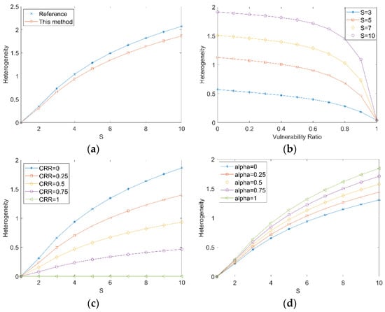 As shown in Figure 6b, when the symbiotic vulnerability ratio is 0, the heterogeneity is the largest; when the symbiotic vulnerability ratio is 1, the heterogeneity is the smallest in the current cognitive situation.