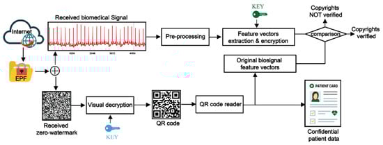 The proposed scheme for protecting both bio-signal copyrights and confidential patient information is summarized in Figure 4. Detailed information about this scheme is discussed in the following subsections.