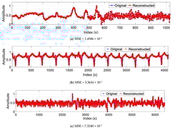 where represents the reconstructed form of an F-matrix of size . The matrix is then reshaped into a 1D vector of size for producing the reconstructed signal denoted . This reconstructed signal is subject to certain degradation compared to its original version (). This degradation can be assessed by the mean square error (MSE) criterion given in (4) as follows []: