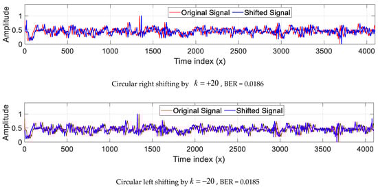 Original EEG signal and its circularly shifted versions with the corresponding BER values.