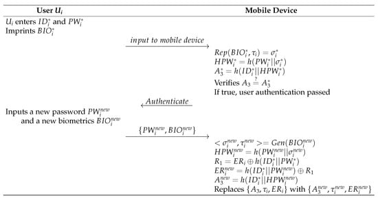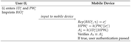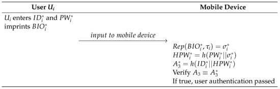 - The mobile device computes , , and . Then, the mobile device verifies by comparison. If , the mobile device allows to log in.