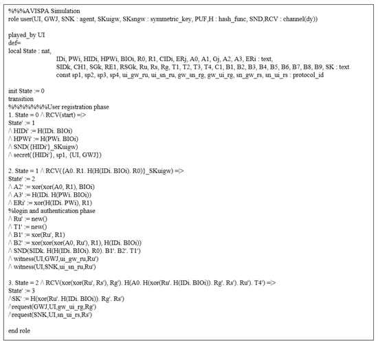 - We analyzed the security features of the proposed scheme using the well-known Burrows–Abadi–Needham (BAN) logic and real-or-random (RoR) model, which improve the mutual authentication and session key security, respectively. Furthermore, we utilized the Automated Verification of Internet Security Protocols and Applications (AVISPA) simulation tool to prove that the proposed scheme is resistant to replay and man-in-the-middle attacks.