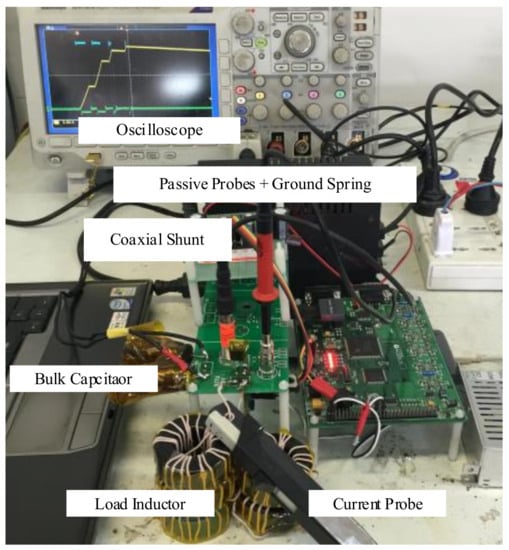To verify the suppressing effectiveness of DC-side snubbers, experiments using the 1200V SiC MOSFET C2M0080120D and the SiC diode C4D20120A by Cree Inc. are marked based on the double-pulse-test circuit. Figure 9 presents the testing platform, and Table 2 shows the test equipment used in the platform.