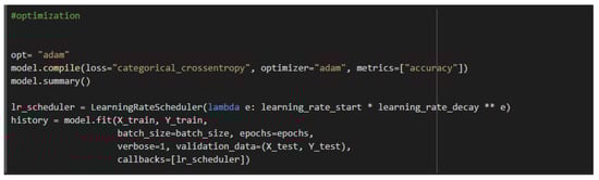 Once the CNN architecture is selected, it is compiled before the training starts. In this step, we define the loss function, optimizer and metrics. After the fit function measures, the performance of CNN model is determined. Fitting refers to adjusting the parameters in the model to improve accuracy, as shown in Figure 7.