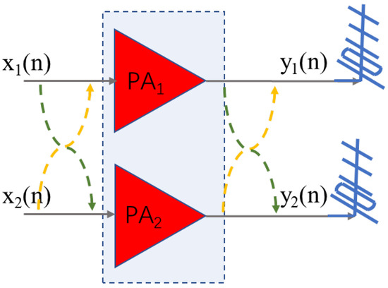 Due to the existence of the nonlinear crosstalk, the input signal is the addition of the signal of the local branch and the coupling signal of other branches. Considering a 2 × 2 MIMO transmitter:
