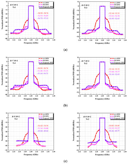 Figure 4 shows a good suppression on the out-of-band distortion of signals, providing an extra solution for crosstalk suppression in MIMO systems. The simulation result also shows that for the modeling of the 2 × 2 MIMO transmitter, the proposed method has a better out-of-band inhibition in the PH model than the m-CPWL model.
