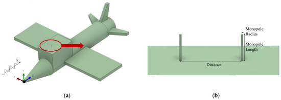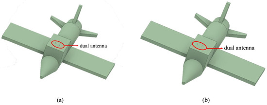 Figure 3. (a) 3D-model of the aircraft model; (b) 3D-model of the antenna system.
