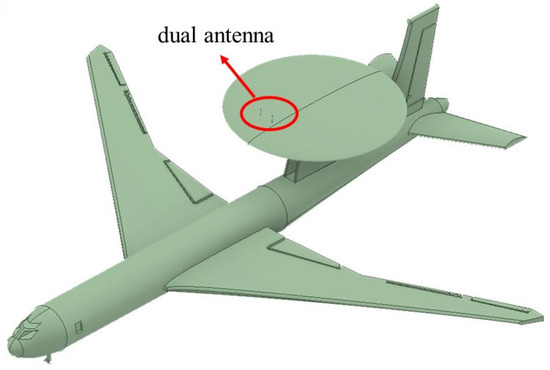 Figure 9. 3D-model of the aircraft with the dual antenna structure.