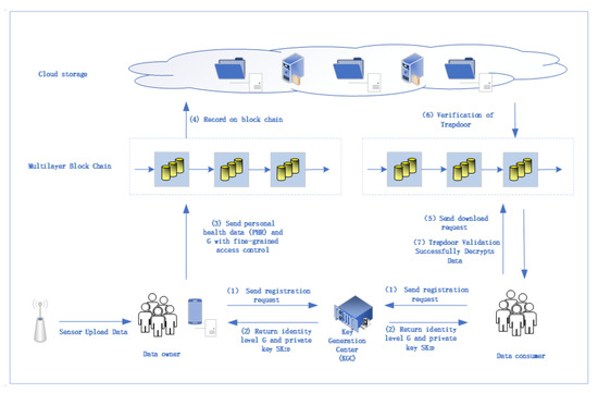 - Zhang, J.; Yang, Y.; Liu, X.; Ma, J. An Efficient Blockchain-Based Hierarchical Data Sharing for Healthcare Internet of Things. IEEE Trans. Ind. Inform. 2022, 18, 7139–7150. [Google Scholar] [CrossRef]