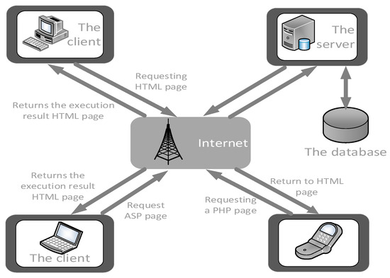 This system is a network application system using B/S mode [13]. The advantage of B/S mode is that the system is easy to develop, maintain, and upgrade, and the cost of control is low. This feature has the same user interface. It is easy to use and can be used by different users with different login settings. In general, the client does not need to install new software. It can be used on the browser Web page, which makes the system easy to maintain and manage. In addition, the application runs on the server side, and the management, updating, and upgrading of the system are very flexible, reducing the interaction between the server side and the client side. The B/S mode is shown in Figure 3.